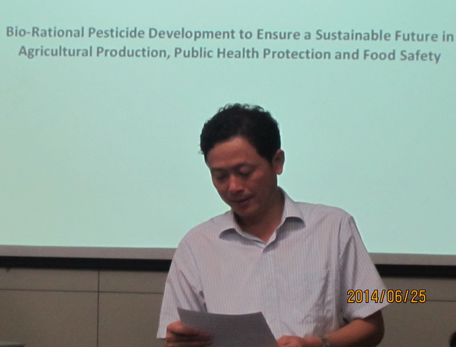 本网讯(生科院 蒋澜)6月25日下午,AB论坛第九期在生科院一楼会议室如期举办,美藉华人汪悦博士应邀作了题为《发展生物源农药以确保可持续的农业公共卫生保护以及食品安全》的学术报告。论坛由院长席贻龙教授主持,生科院部分老师和同学们聆听了报告。