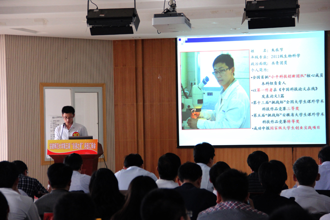 他自立自强,勤奋好学,立志科研。大一开始进入导师实验室,从事寄生蜂生物防治研究。先后荣获“挑战杯”大学生课外学术科技作品竞赛全国三等奖、全省特等奖,芜湖市大学生专利创新大赛三等奖,校大学生创业计划竞赛金奖。现主持校大学生创新创业训练计划1项并被推选为省级质量工程项目,成功申报2012年度国家级大学生创业实践项目1项。