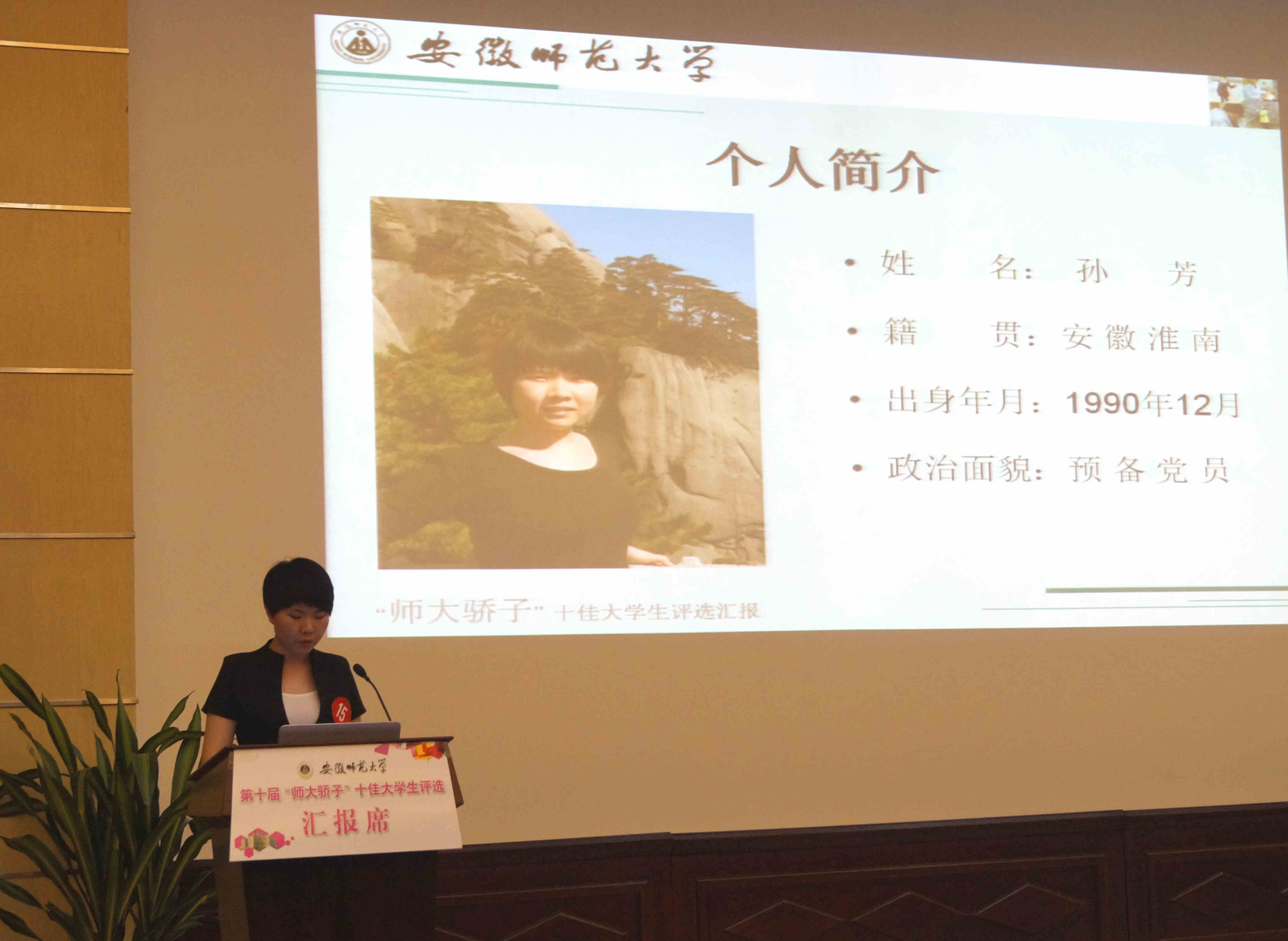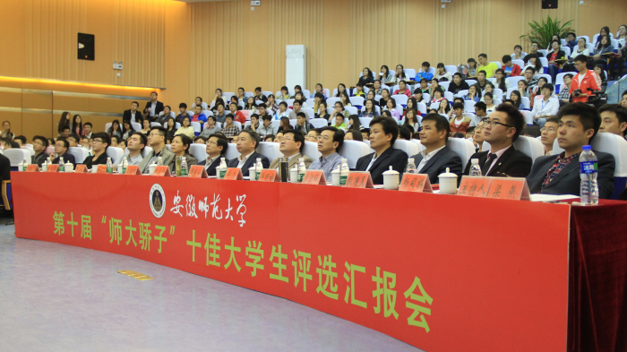 大学生“自强之星”和“师大骄子”十佳大学生评选是我校是我校选树青年典型的重要载体,是我校授予青年大学生的最高荣誉,通过自立自强、环保先锋、科研达人、创新之星等优秀学生榜样号召带动广大学生奋发成才,认真学习和践行社会主义核心价值观。我院高度重视大学生成人成才教育,学院立足专业早谋划,早引领,通过大一生涯规划把握成功方向,大二专业导航夯实专业基础,大三创新创业开发无限潜能,大四扎实实践理论联系实际。先后涌现出校级“自强之星”潘永九、蔡凌睿、贺张、朱承节,“师大骄子”司曼曼、王米、王雷、贺张、韩莹、孙芳等优秀典型,学院创新创业团队更是荣获第八届“挑战杯”中国大学生创业计划竞赛铜奖、第十三届“挑战杯”全国大学生课外学术科技作品竞赛三等奖、第五届安徽省 “挑战杯”大学生课外学术科技作品竞赛特等奖、第八届安徽省大学生创业之星(金奖)、小平科技创新团队等荣誉,育人成果丰硕。